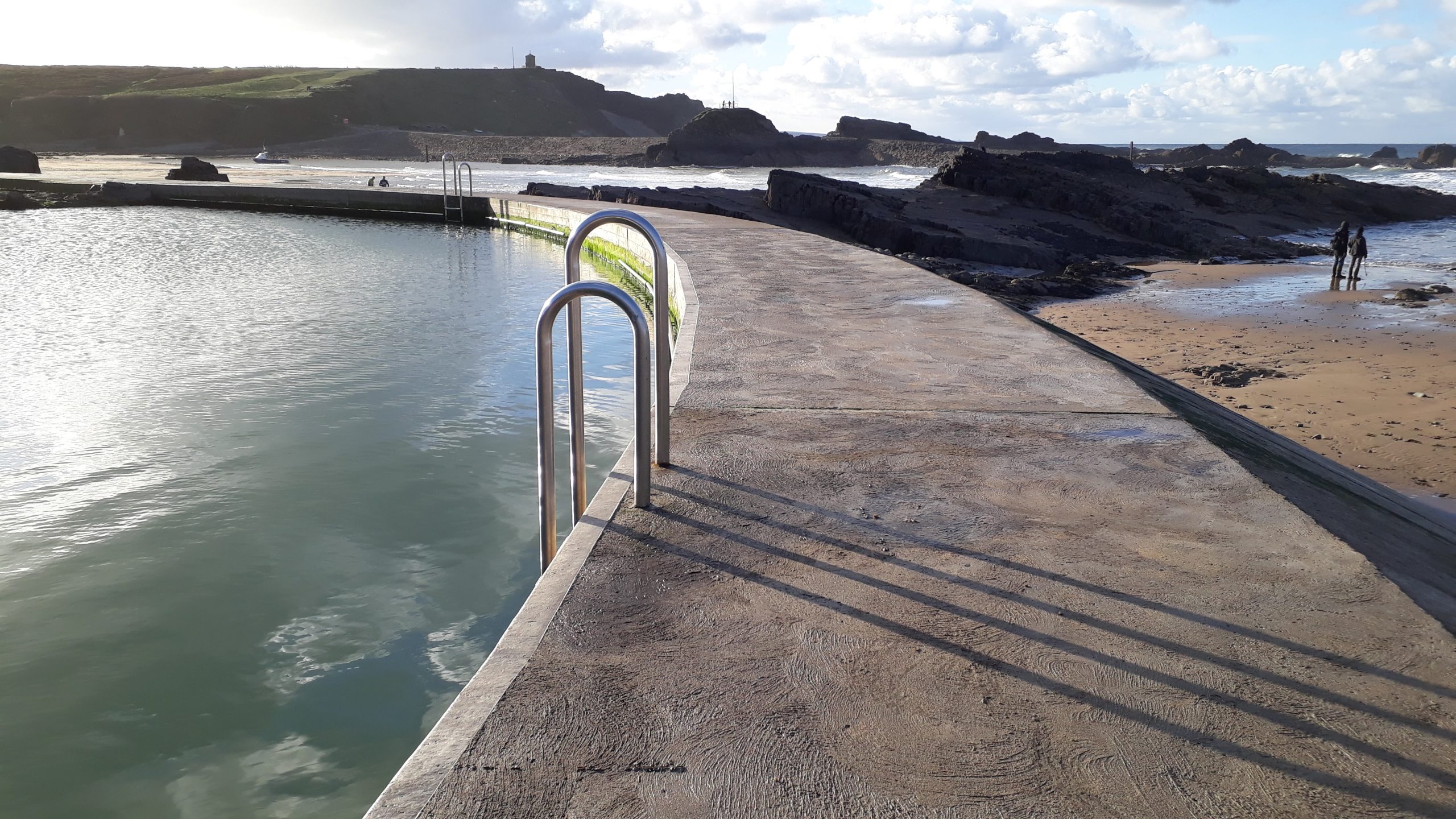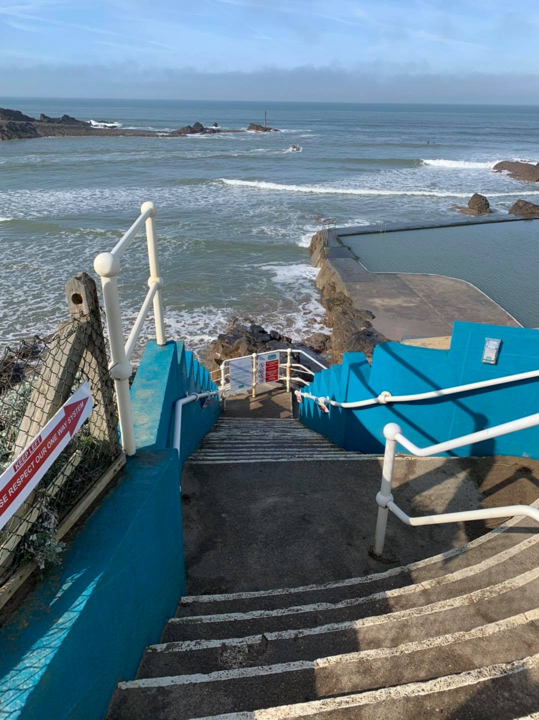 Unfortunately, there isn’t dedicated disabled access to the Pool itself. There are steep steps to the Pool, down from the RNLI Hut perched on the top of the Downs, and from both Summerleaze and Middle Beach for those who are able. There is clear signage that the Beach Huts are for private access only to those renting them. Those needing disabled access are the exception to this rule and may follow the stepped path in front of the Beach Huts that zigzags down the terraces. Please note that it is not currently wheelchair accessible.