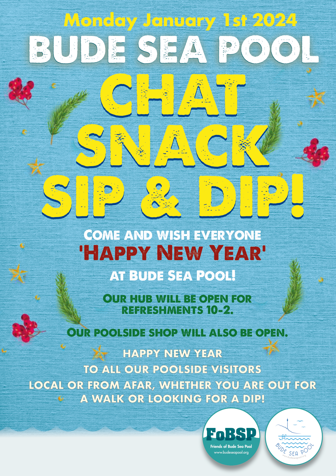 Come and wish everyone 'Happy New Year' at Bude Sea Pool! Out and about walking to blow away the cobwebs – enjoy refreshments in our...